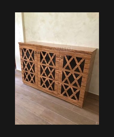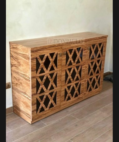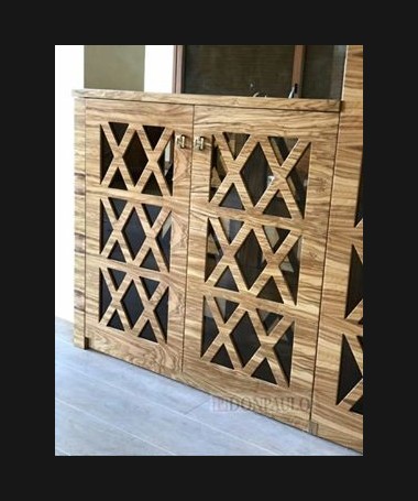 - Vitrina modelo TAL0018, de estilo moderno hecha a medida, fabricada en madera de raíz de olivo