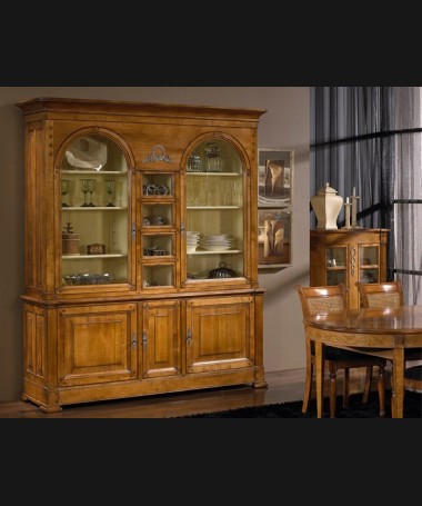 - Vitrina modelo PAL0021, de estilo clásico hecha a medida, en madera de cerezo, en acabado efecto envejecido en dos tonos