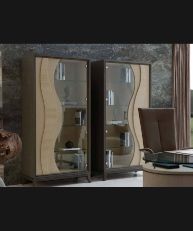 - Vitrina modelo PAL0008, hecha a medida, lacada en tonos marrones con cristales transparentes