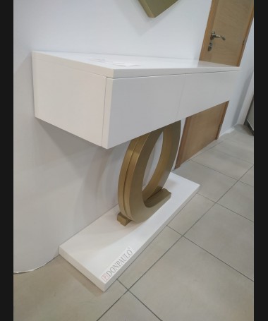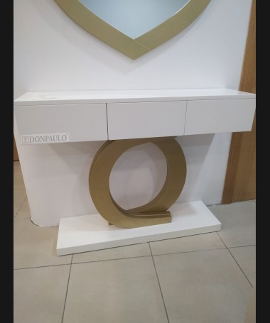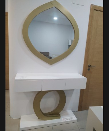 - Consola con espejo modelo EAP0037, de estilo moderno hecha a medida, lacada en blanco y dorado satinado, con 3 cajones: