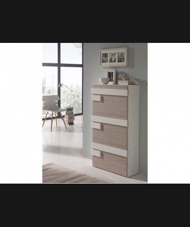 - Zapatero modelo PAP0048, de estilo moderno hecho a medida, en melamina en dos tonos, con 3 cajones abatibles para guardar cajones