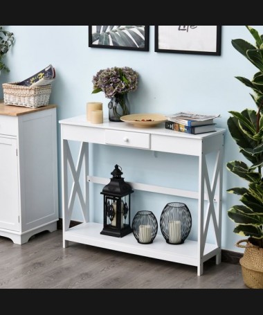 - Consola modelo PAP0051, de estilo clásico hecha a medida, en lacado blanco mate, con un cajón pequeño y una balda en la parte inferior