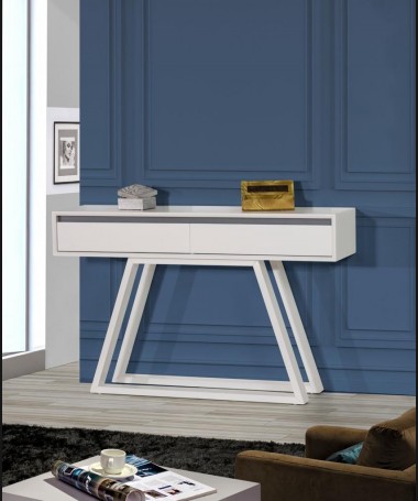 - Consola modelo PAP0058, de estilo moderno hecho a medida, lacado en blanco mate con los detalles grises, y dos cajones