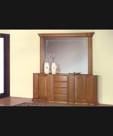 - Aparador modelo PAP0067, de estilo clásico hecho a medida, en madera de castaño con puertas y cajones, y espejo a juego