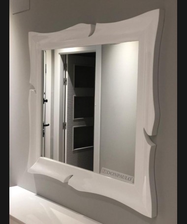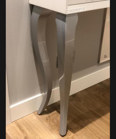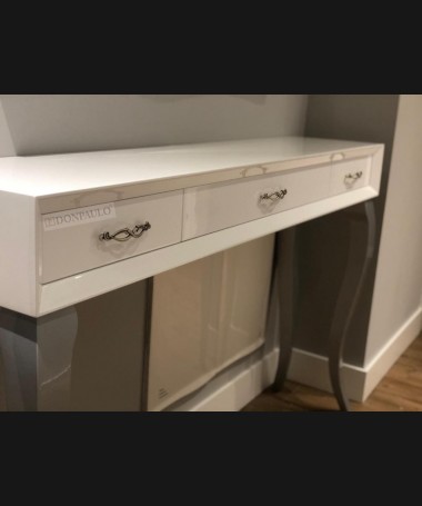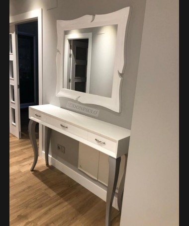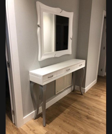 - Consola con espejo modelo TAP0049, de estilo moderno hecho a medida, lacado en blanco y plata, con tres cajones