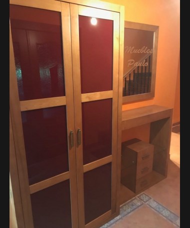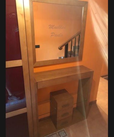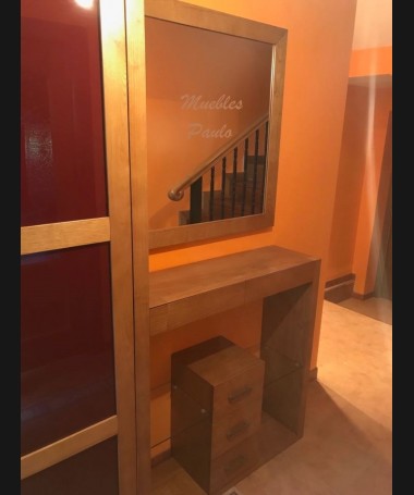 - Consola con espejo modelo TAP0050, de estilo moderno hecha a medida, en madera de castaño en color roble