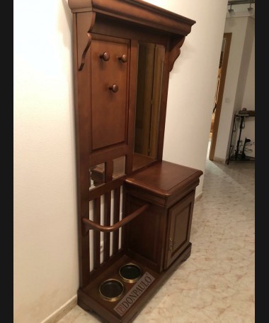 - Recibidor con paragüero y espejo modelo TAP0060, de estilo clásico hecho a medida, con una puerta y un cajón, perchero, paragüero y espejo a juego