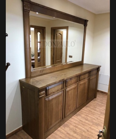 - Aparador modelo TAP0009, en madera de castaño hecho a medida en acabado castaño viejo con la beta oscurecida, y con perchero a juego