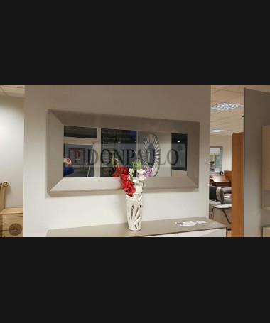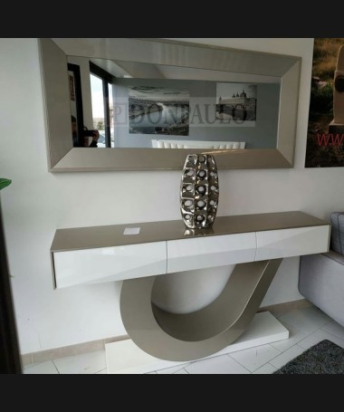 - Consola con espejo modelo EAP0011, hecha a medida, en DM Hidrófugo lacado en alto brillo gris y blanco: