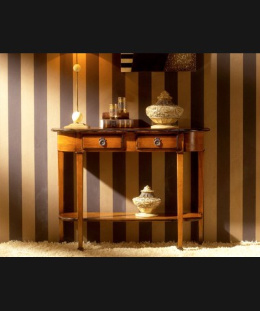 - Consola modelo PAP0009, hecha a medida, de estilo clásico, en madera de cerezo, en acabado efecto anticuario con dos cajones