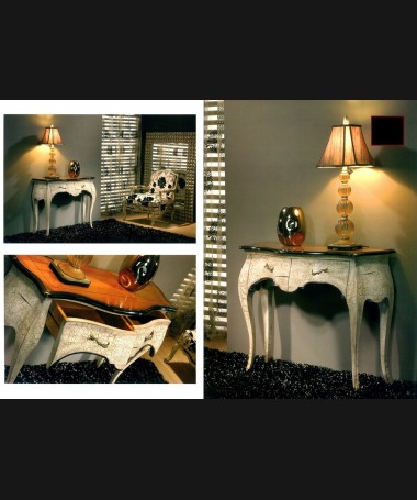 - Consola modelo PAP0027, hecha a medida de estilo clásico, en madera de cerezo, en acabado efecto anticuario con un cajón