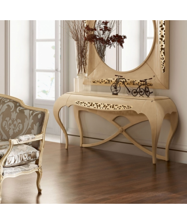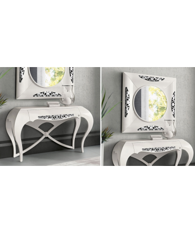 - Consola modelo PAP0034, de estilo moderno heccha a medida, en acabado lacado alto brillo en diferentes acabados, con espejo a juego