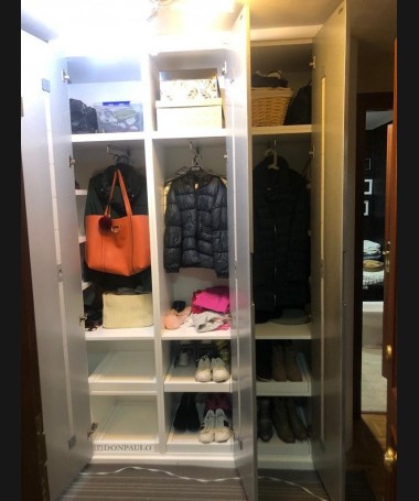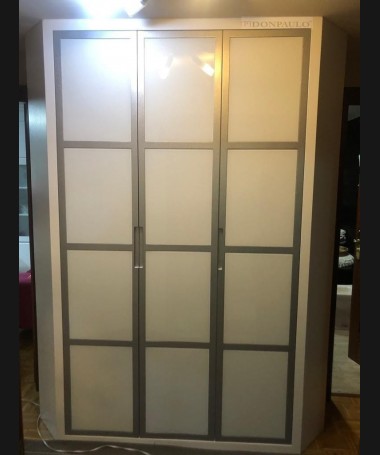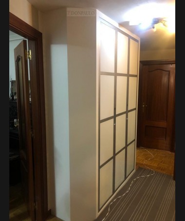 - Armario modelo TAR0049, de estilo moderno hecho a medida, con las puertas de apertura de cristal blancas y detalles grises