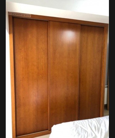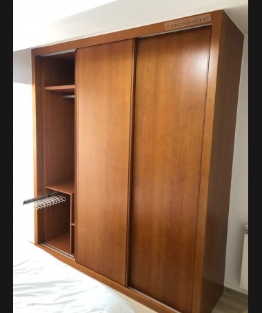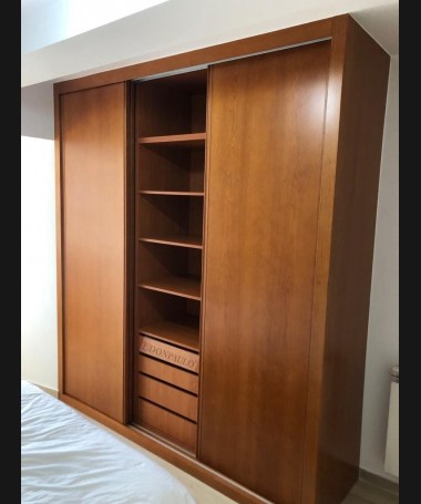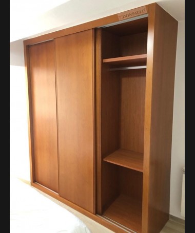 - Armario modelo TAR0051, de estilo moderno hecho a medida, en madera de castaño color am con el interior rechapado en madera natural en el mismo acabado, con la distribución personalizada