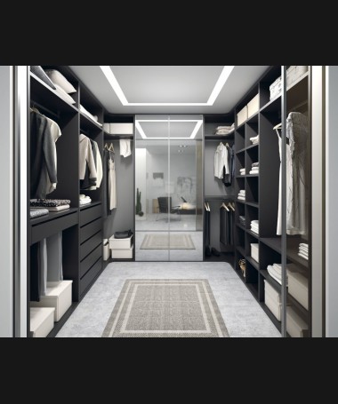 - Vestidor modelo PAR0033, de estilo moderno hecho a medida, con el interior personalizado, en negro con un espejo en el fondo