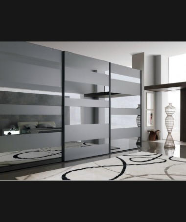 - Armario modelo PAR0059, de estilo moderno hecho a medida, en lacado gris mate con detalles de cristal, de puertas correderas, con el interior personalizado