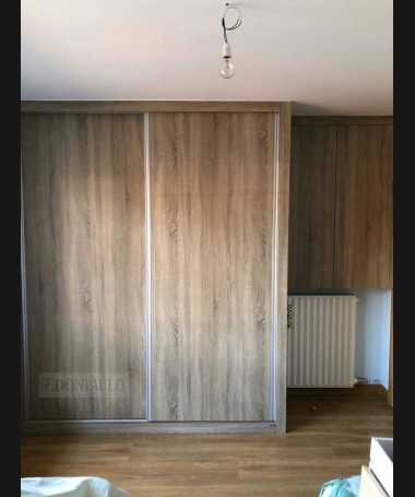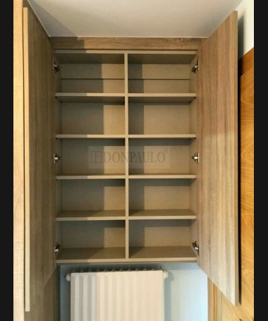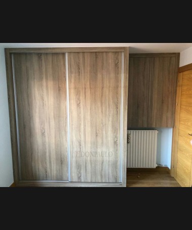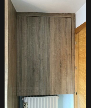 - Armario modelo TAR0069, de estilo moderno hecho a medida, en melamina en acabado color roble envejecido con el interior en melamina textil, con la división personalizada