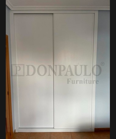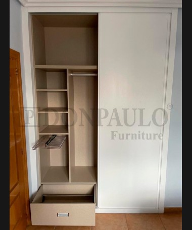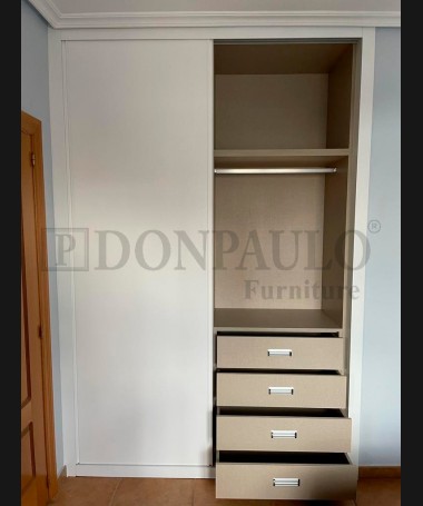 - Armario modelo TAR0087, de estilo moderno hecho a medida, fabricado en madera en acabado decapado blanco, con el interior personalizado en melamina textil