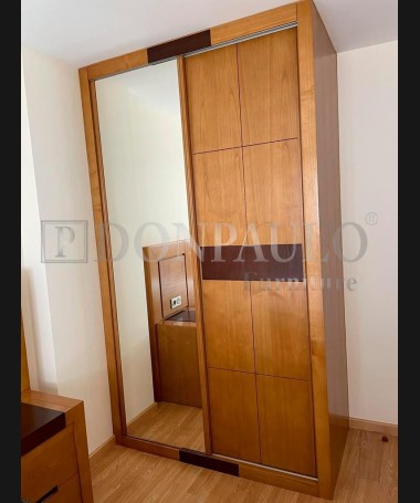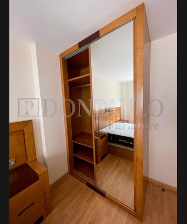 - Armario modelo Luxus TAR0088, de estilo moderno hecho a medida, en madera de castaño en acabado color roble con detalles color tabaco, con el interior a juego y la distribución personalizada