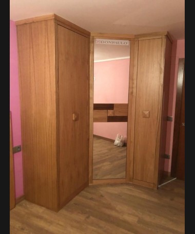 - Armario modelo TAR0094, de estilo moderno hecho a medida, en madera de castaño en acabado color alemán, en forma de "L", con el interior personalizado.