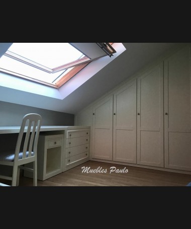 - Armario modelo TAR0116, de estilo clásico hecho a medida, fabricado en madera en acabado decapado blanco roto, con puertas de apertura y el interior a juego y personalizado.
