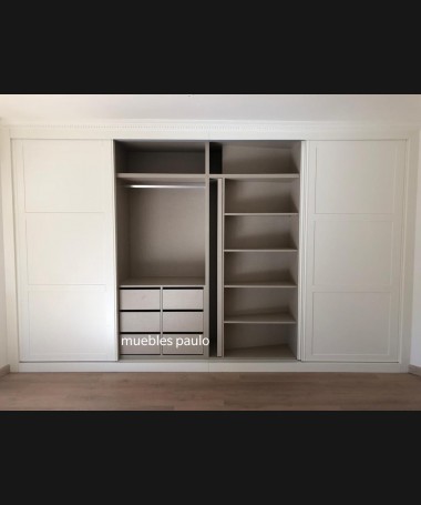 - Armario modelo TAR0029, en madera en acabado decapado blanco con el interior de melamina, hecho a medida