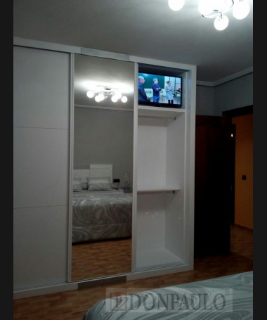 - Armario modelo TAR0044, en madera de castaño en acabado decapado blanco con detalles en decapé gris hecho a medida