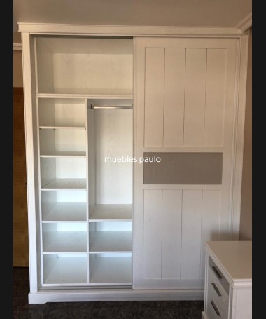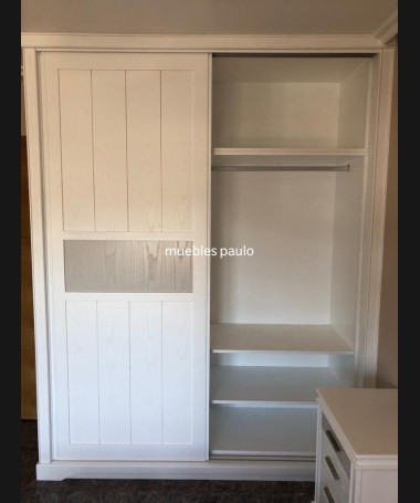 - Armario modelo TAR0005, en madera de castaño en acabado decape blanco con detalles en gris, hecho a medida