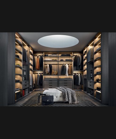 - Vestidor modelo PAR0006, de estilo moderno hecho a medida, en madera, en acabado decape negro y color madera, con leds y distribución personalizada