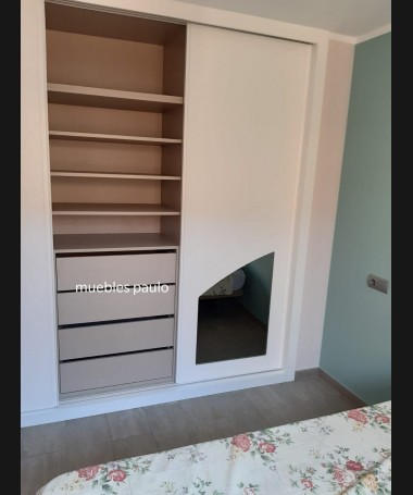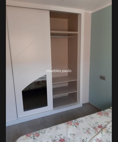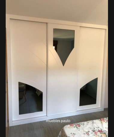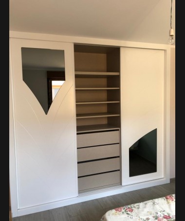 - Armario modelo TAR, en madera en decape blanco con los detalles de espejo, y el interior personalizado en melamina. Todo ello hecho a medida
