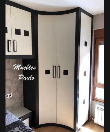 - Armario modelo TAR0019, de madera en acabado decapado negro y blanco, hecho a medida, con el interior personalizado