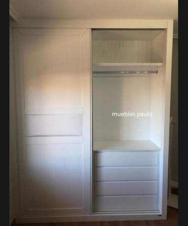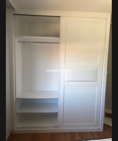 - Armario modelo TAR0022, en madera en acabado decapado blanco con detalles en color plata, hecho a medida, con el interior personalizado