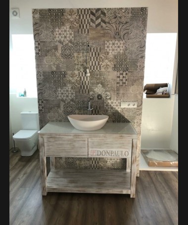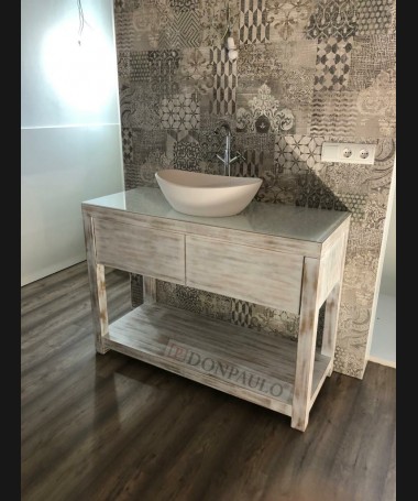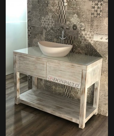 - Mueble de baño modelo TBA0006, de estilo envejecido hecho a medida, en madera en acabado color roble decapado envejecido con dos cajones