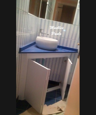 - Mueble de baño modelo TBA0020, de estilo moderno hecho a medida, en blanco con puertas y uñero