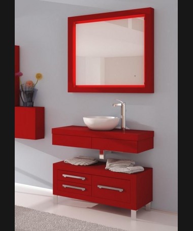 - Mueble de baño modelo PBA0024, de estilo moderno hecho a medida, en DM lacado en rojo mate, con cajón, con espejo y mini-columna a juego