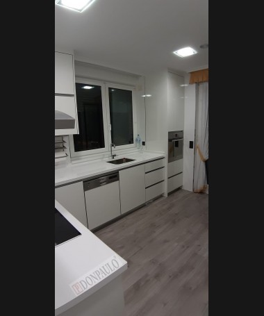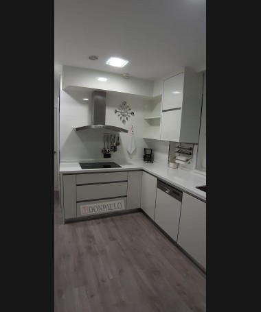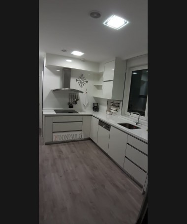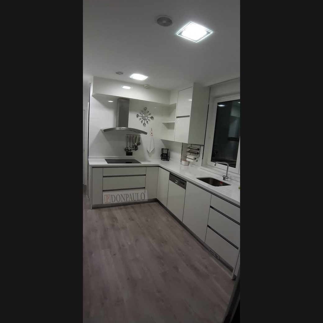 - Cocina modelo TCC0001, de estilo moderno hecha a medida, en acabado lacado blanco con la encimera de Silestone blanco