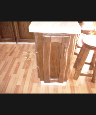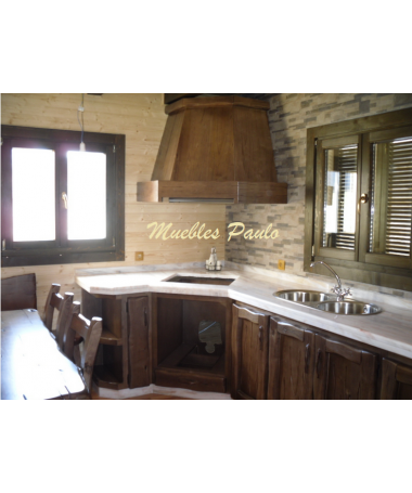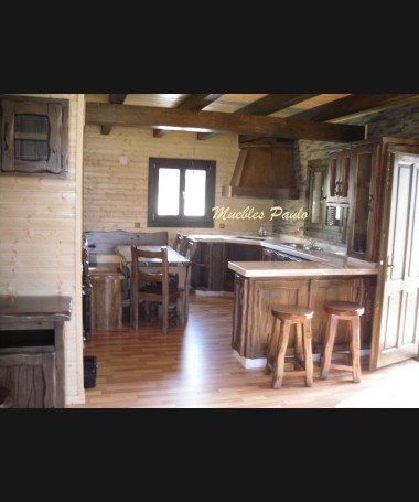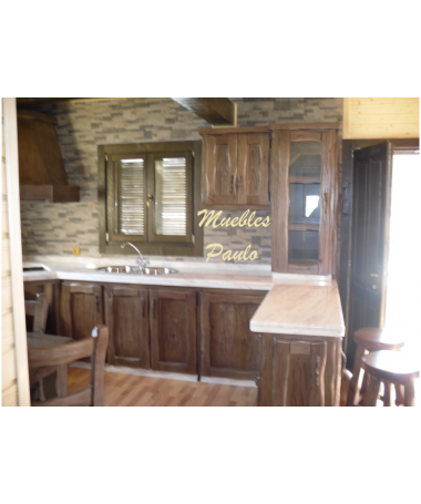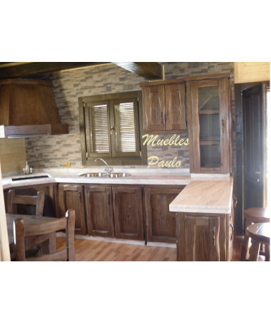 - Cocina modelo TCC0014, de estilo rústico hecha a medida, en madera de castaño 100% maciza en acabado efecto envejecido, compuesto por muebles de cocina y comedor a juego