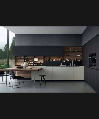 - Cocina modelo PCC0008, de estilo moderno hecha a medida, en lacado mate blanco y negro y tablero marino