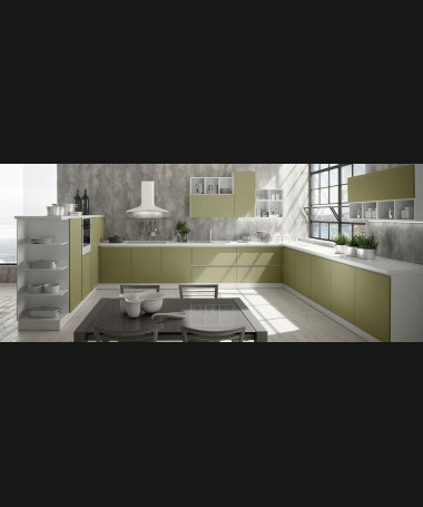 - Cocina modelo PCC0014, de estilo moderno hecha a medida, lacada en color verde
