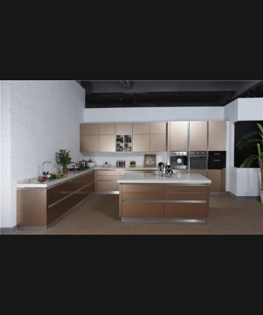 - Cocina modelo PCC0018, hecha a medida de estilo moderno, en lacado marrón