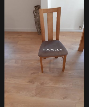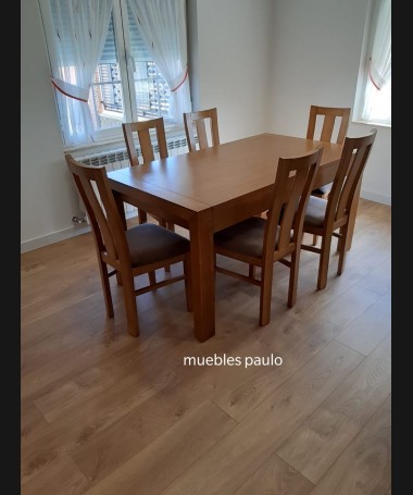 - Comedor modelo TCO0042, de estilo moderno hecho a medida, en madera en acabado color am. Compuesto por mesa de comedor extensible, y 6 sillas con la tapa tapizada en tela de fácil