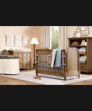 - Dormitorio de bebé modelo PDB0029, de estilo clásico hecho a medida, en madera, compuesto por cuna, estantería y cambiador