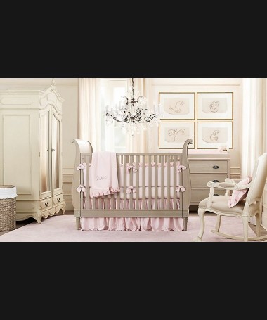 - Dormitorio de bebé modelo PDB0011, de estilo clásico hecho a medida, en lacado blanco roto, compuesto por cuna, cómoda con cambiador, mecedora y armario a juego