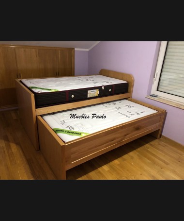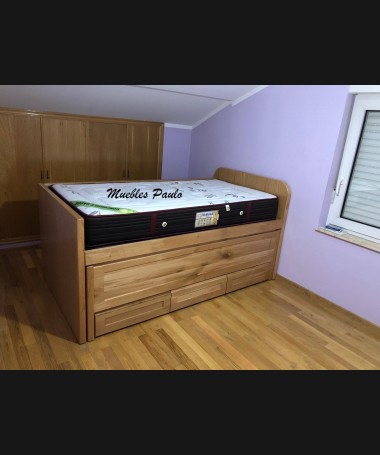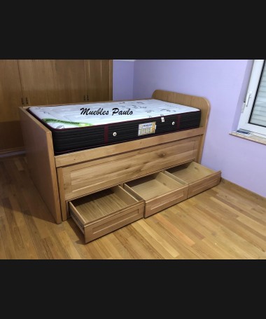 - Cama compacta modelo TDJ0045, de estilo moderno hecho a medida, en madera de castaño con cajones debajo