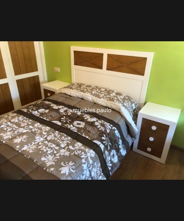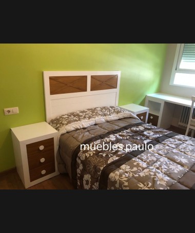 - Dormitorio juvenil modelo TDJ0004, hecho a medida, en madera de castaño en acabado decape blanco y madera, compuesto por cama, 2 mesitas, escritorio con librería, silla de estudio y armario a juego