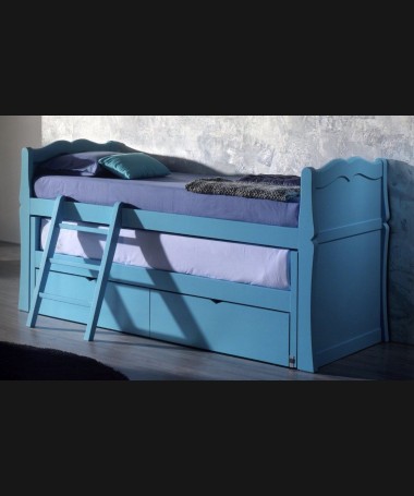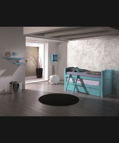 - Dormitorio juvenil modelo PDJ0047, de estilo clásico hecho a medida, lacado en azul mate. Compuesto por cama campacta con escalera, y estanterías a juego
