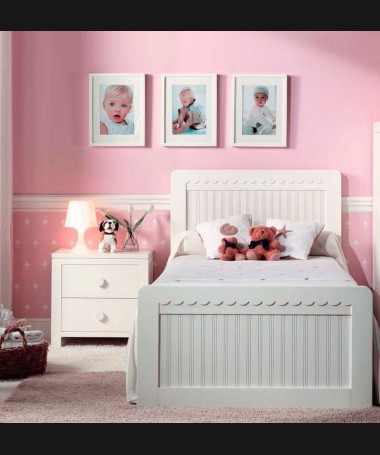 - Dormitorio juvenil modelo PDJ0049, de estilo clásico hecho a medida, en lacado blanco mate. Compuesto por cama y mesita a juego