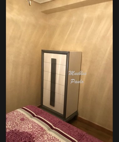 - Dormitorio modelo TDO0015, lacado en blanco con los detalles lacados en gris oscuro. Hecho a medida