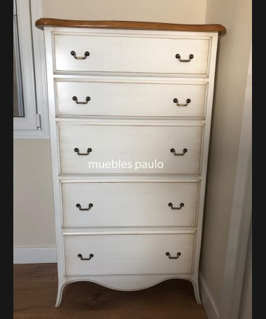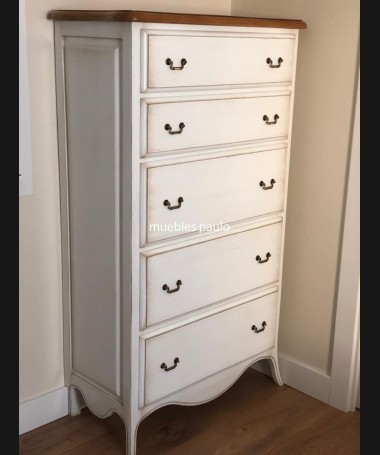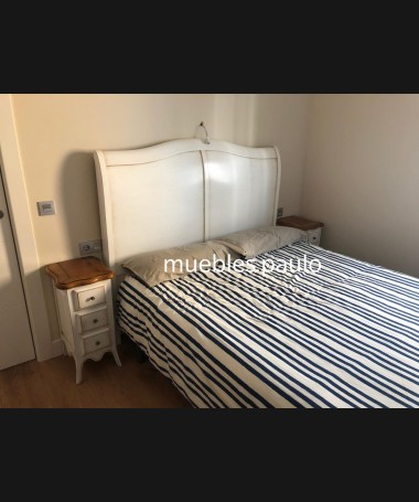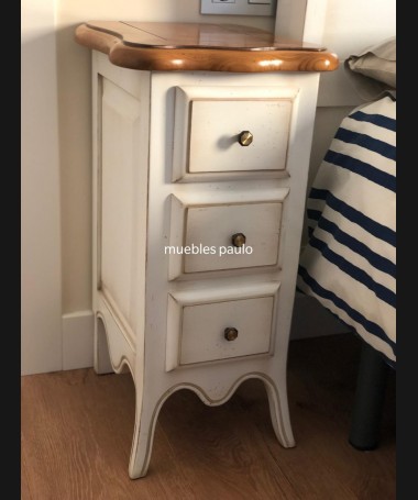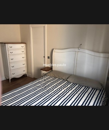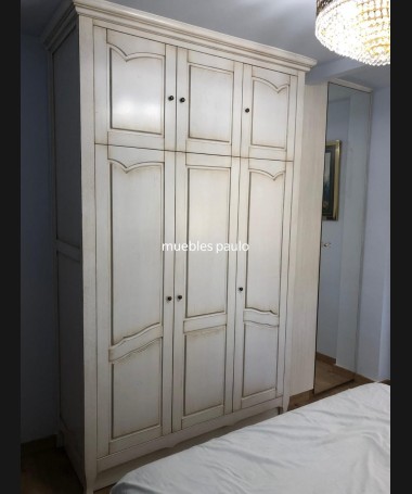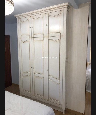 - Dormitorio modelo TDO0033, de estilo clásico hecho a medida, en cerezo en acabado efecto envejecido, compuesto por cama, dos mesitas, sinfonier y armario a juego