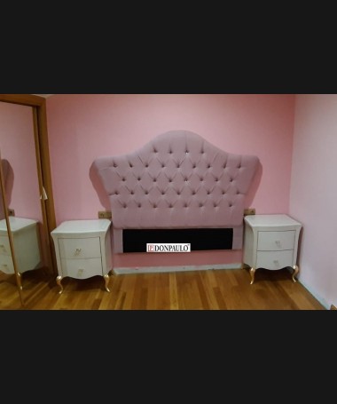 - Dormitorio modelo TDO0040, de estilo clásico hecho a medida, en cerezo en acabado efecto envejecido, con el cabecero tapizado